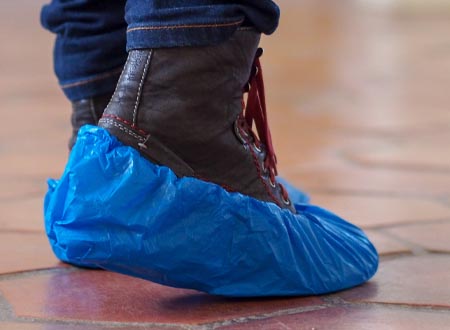 Cubre-Calzado azul de tela no tejida TNT, la unidad, intercambiable. Unidad mínima de venta, bolsa de 100 unidades.