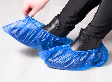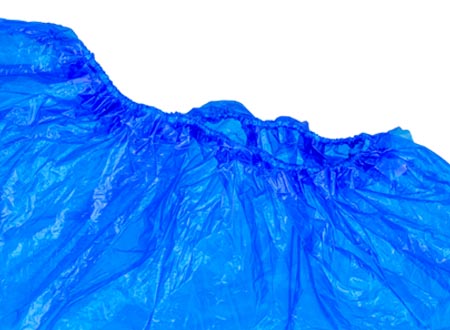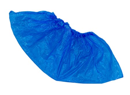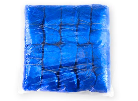 Cubre-Calzado azul de plástico PE, la unidad, intercambiable. Unidad mínima de venta, bolsa de 100 unidades.