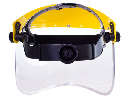 Face Shield - Escudo Protector Facial Profesional, con amplio frente de policarbonato (PC) translúcido abatible, y estructura plástica ABS interior ajustable para cabeza, para una completa protección de transmisión de partículas por vía aérea. Incluye protección de esponja para la frente. Se recomienda especialmente para uso en labores de interacción personal que requieren una alta protección y aislamiento, como servicios de atención a clientes o público en general.