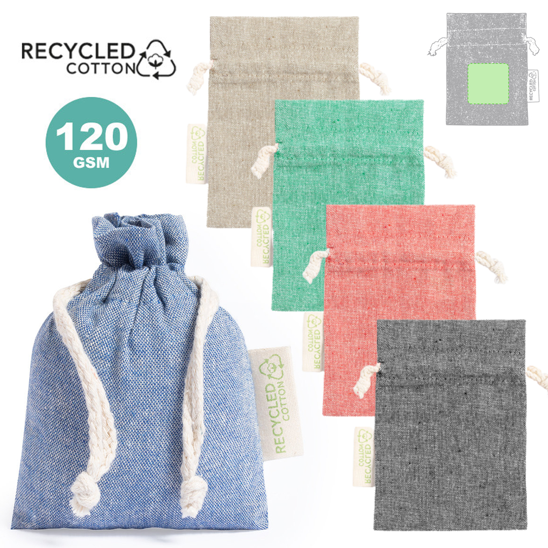 CARACTERÍSTICAS Composición: 100% Algodón Reciclado 120 g/ m2 Especificaciones artículo: 14 cm / 10 cm / cm | 10 gr Packaging: alto (cm): 46 Packaging: largo (cm) : 46 Packaging: ancho (cm) : 25 Peso caja (Kgr): 8 Unidades/caja: 500