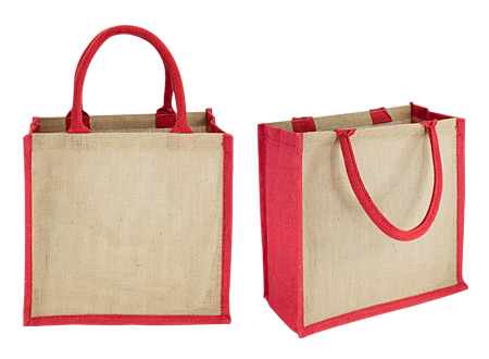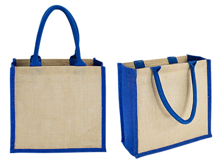 Bolsa de Yute modelo "Rain Forest", con recubrimiento laminado interior. Fuelle de yute teñido color. Manillas de cordón acolchado de yute teñido color de 45 x 1.5 cm. aprox. c/u.