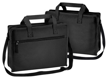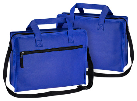 Maletín Porta-Documentos, en tela no tejida (TNT) ultra-resistente de 120g/m2. Contiene 2 asas de 38cm. c/u aprox. con costuras reforzadas, cinta para colgar al hombro, base rellena interior de 36 x 9 cm. Compartimento principal + bolsillo delantero, ambos con cierre-eclair negro.