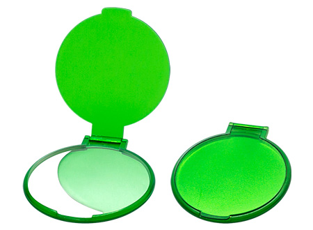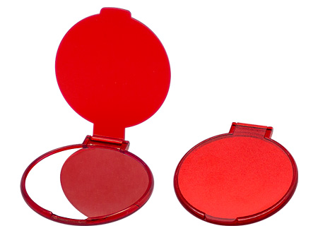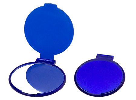 Espejo redondo de bolsillo, de plástico ABS, con tapa. Presentación individual en bolsita de polipropileno.