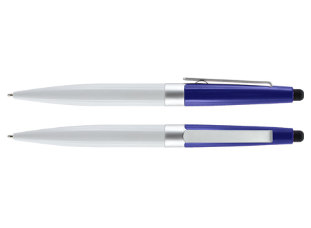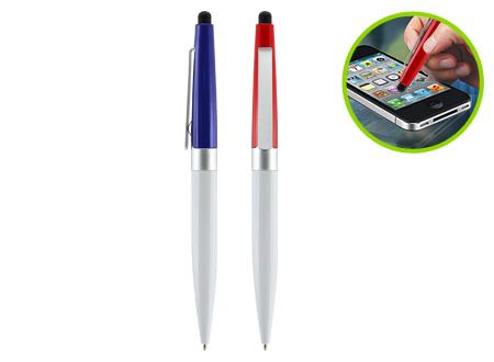 Bolígrafo modelo "Biarritz", mitad metálico/mitad plástico, incluye puntero Touch-Screen. Escritura negra. FICHA DEL PRODUCTO Tamaño: 15 x 0.9 cm. Peso: 19.7 g. Colores: Blanco/Azul (02), Blanco/Rojo (03). Escritura: Negra.