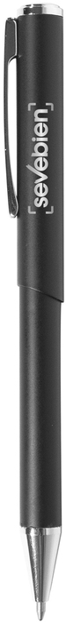 Acero inoxidable. Boligrafo rollerball. Cuerpo laqueado negro mate. Clip y puntera color plata. Tinta negra. Presentación en caja de regalo.