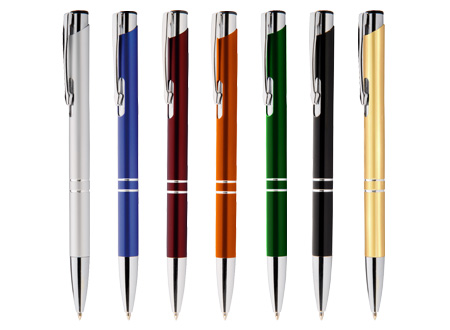 Bolígrafo de Aluminio modelo "Arrow", con terminales cromados. Refill plástico parker type. Escritura azul.