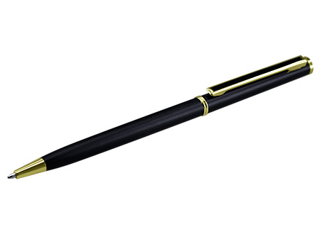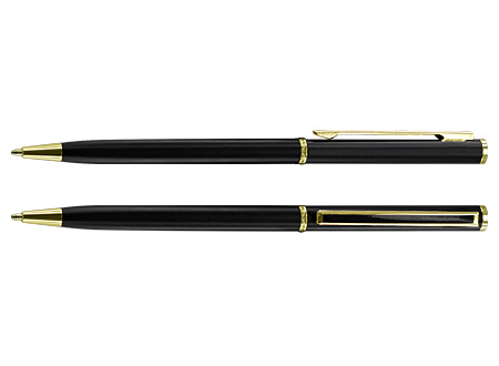 Bolígrafo Metálico negro "Tourist", con terminales dorados. Especial para el rubro Hotelería y Turismo. Escritura negra. FICHA DEL PRODUCTO Tamaño: 13.3 x Ø 0.7 cm. Colores: Negro (08). Escritura: Negra.