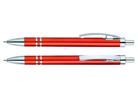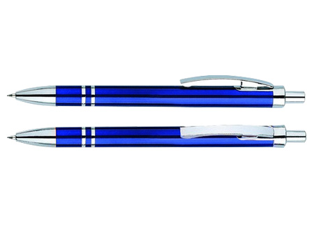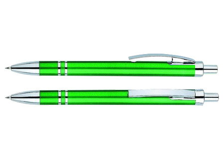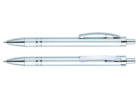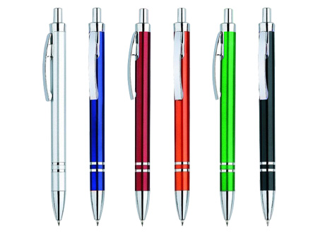 Bolígrafo plástico "Arco" con cuerpo de color metalizado. Escritura azul. FICHA DEL PRODUCTO Colores: Plata (00), Azul (02), Rojo (03), Naranjo (04), Verde (06), Negro (08). Escritura: Azul