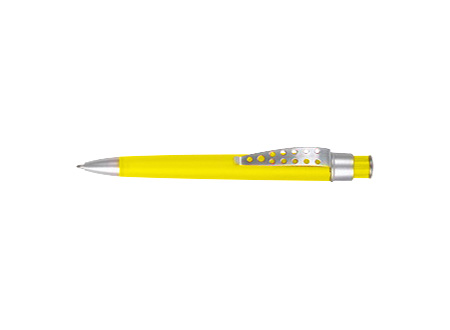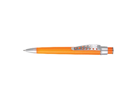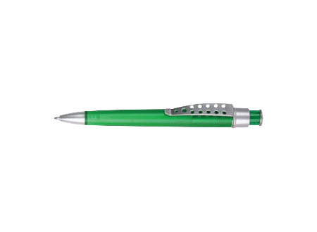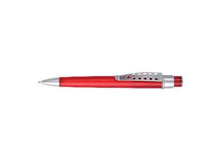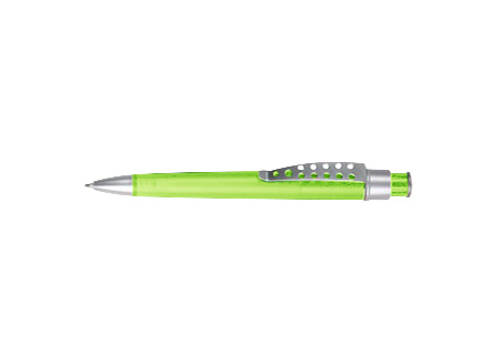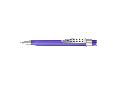 Bolígrafo plástico color frozen modelo "Evolution" con clip metálico con orificios. Escritura azul.