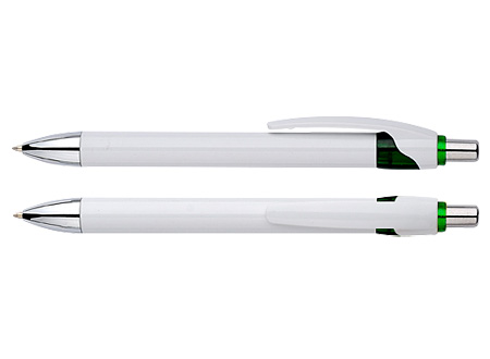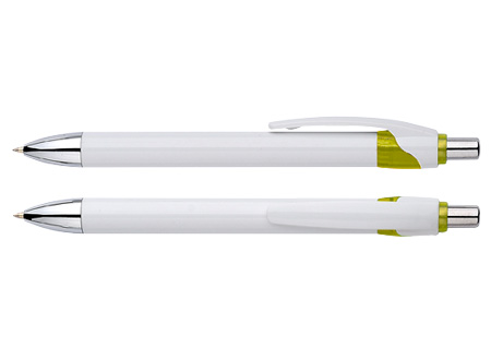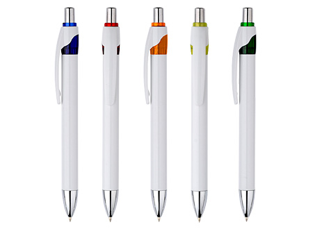 Bolígrafo plástico cuerpo blanco modelo "Masai". FICHA DEL PRODUCTO Colores: Azul (02), Rojo (03), Naranjo (04), Amarillo (05), Verde (06).