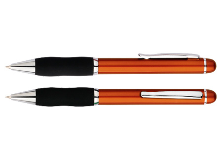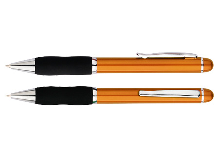 Bolígrafo plástico "Qasar" con cuerpo de color metalizado. Escritura azul. FICHA DEL PRODUCTO Colores: Azul (02), Rojo (03), Naranjo Oscuro (04), Verde (06), Negro (08), Morado (25), Encobrizado (44). Escritura: Azul