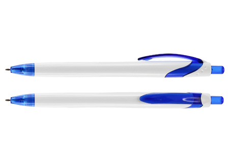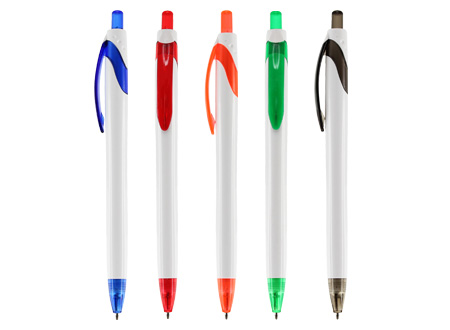 Bolígrafo promocional "Economic" cuerpo blanco. Escritura azul. FICHA DEL PRODUCTO Tamaño: 14 x Ø 1 cm. Colores: Azul (02), Rojo (03), Naranjo (04), Verde (06), Negro (08). Escritura: Azul