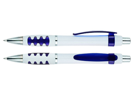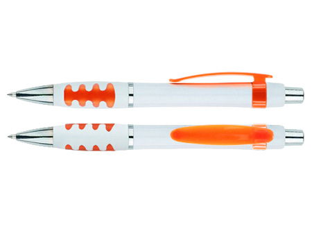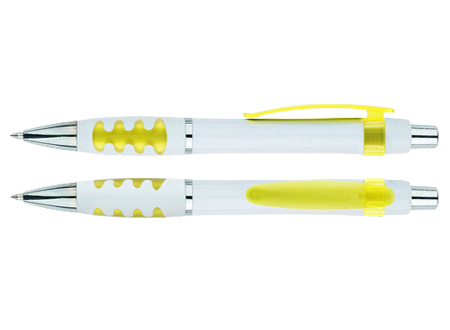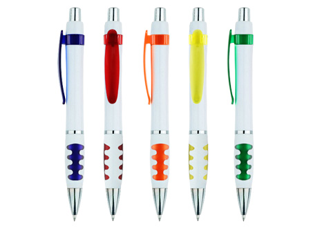 Bolígrafo blanco "Hooligan". Escritura azul. FICHA DEL PRODUCTO Tamaño: 14 x Ø 1.3 cm. Colores: Azul (02), Rojo (03), Naranjo (04), Amarillo (05), Verde (06). Escritura: Azul