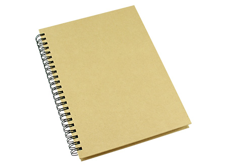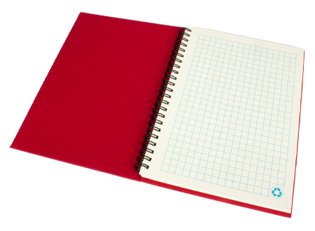Cuaderno Ecológico con Tapas Duras de Cartón Reciclado 650gsm, 70 hojas interiores cuadriculadas y prepicadas de papel reciclado y anillado metalico doble cero.