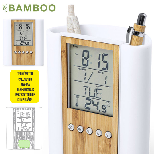 CARACTERÍSTICAS Composición: Bambú/ ABS Especificaciones artículo: Diámetro: 0 cm, alto: 11.9 cm | Peso: 146 gr Packaging: alto (cm): 31.5 Packaging: largo (cm) : 55 Packaging: ancho (cm) : 27.5 Peso caja (Kgr): 11 Unidades/caja: 50