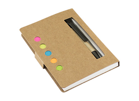 Memo set Ecológico. Incluye 1 bolígrafo ecológico corto + 125 banderitas adhesivas de colores + Block de Notas con 80 hojas blancas pre-picadas. FICHA DEL PRODUCTO Tamaño: 7.8 x 10.5 x 1.1 cm. Colores: Natural (11).