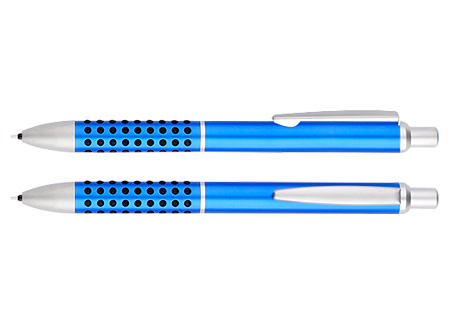 Portaminas metálico satinado modelo "Caterpillar", con lunares de goma negra que brindan una suave sensación de masaje dactilar al escribir.