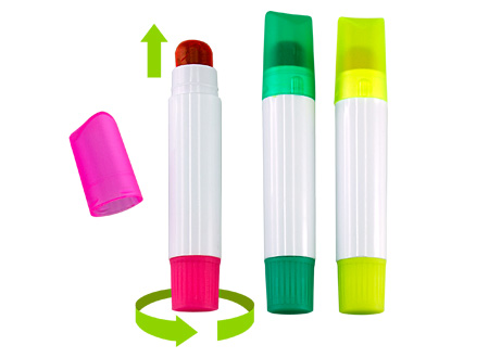 Set de 3 Destacadores de Cera, con dosificador, presentación en Estuche de Plástico transparente. No se secan.