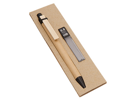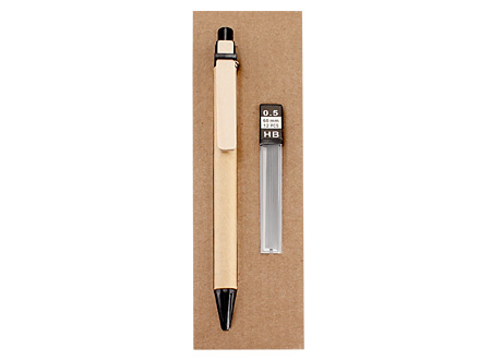Set Portaminas Ecológico en base cartón reciclado. Incluye recambio 12 minas de 0.5mm.