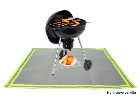 ¿Quieres evitar que las chispas y brasas de tu parrilla o brasero dañen tu piso? Te presentamos esta espectacular alfombra anti-flama de tela de Silicona Fibra de Vidrio, con borde de tela reflectante para ver en la oscuridad. Resiste temperaturas hasta 1.000°C (2.000°F), gracias a su capacidad de reflexión de calor del 96%. Contiene 4 ojetillos en los vértices, para fijar al pasto o tierra. Apilable, liviana, lavable y reutilizable.