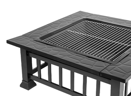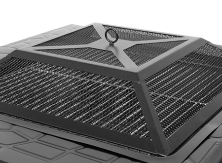 Brasero / Parrilla para Carbón o Leña, de Acero negro, modelo "Luxor". Altura para cocinar: 31cm. Rejilla cromada para cocinar: 51 x 51 x 4mm. Rejilla para carbón: 34 x 34cm x 3.5mm. Tapa con rejilla: 52 x 52 x 8.5cm. Bowl para fuego: 57 x 57 x 11.5cm. Patas: 7 x 7 x29.5cm. Incluye Manual instructivo de armado en español.