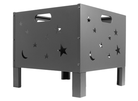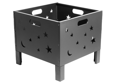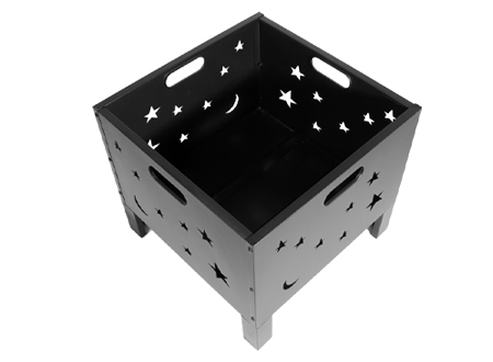 Brasero para Leña o Carbón, de Acero negro, modelo "Constelación". Bowl para fuego: 50 x 50 x 33cm x 10.6mm. Fácil de armar y transportar. Incluye Manual instructivo de armado en español.