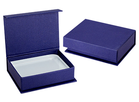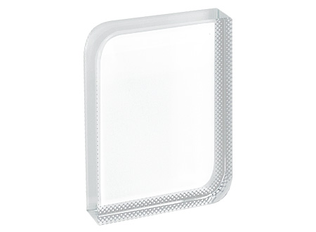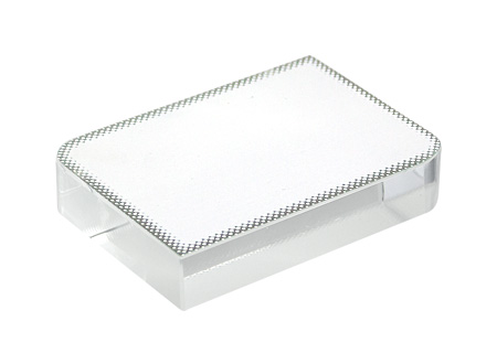 Mini-Trofeo rectangular de Cristal sólido para Sublimación, con 2 vértices redondeados. Presentación en caja de cartón azul.