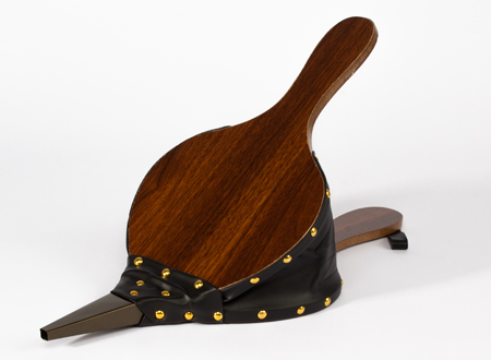 Soplador grande de aire tipo Acordeón, para chimemeas y parrillas. Superficie MDF, reforzado con cuero y tachas. Toma de aire posterior. Amplia superficie para logo.