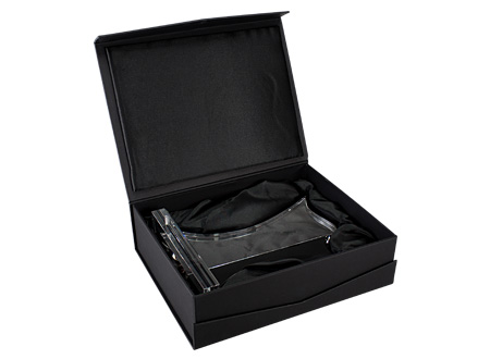 Deluxe Trofeo grande de Cristal modelo "Bauhaus" con aplicación de cristal-color. Presentación en caja de cartón forrado negro.
