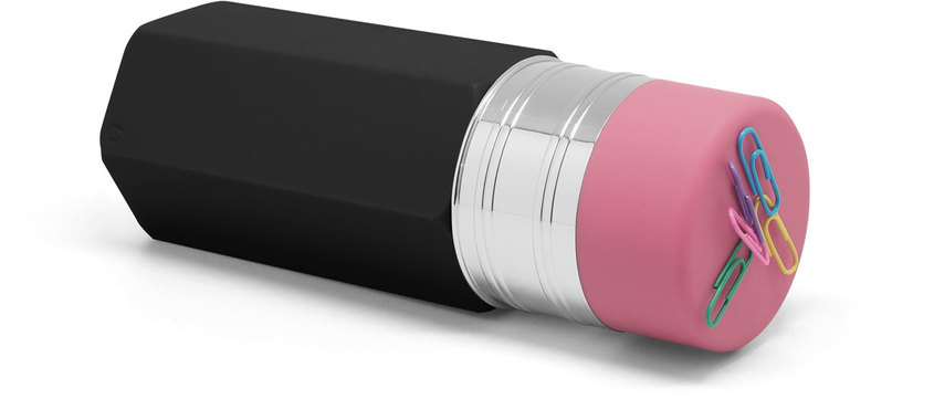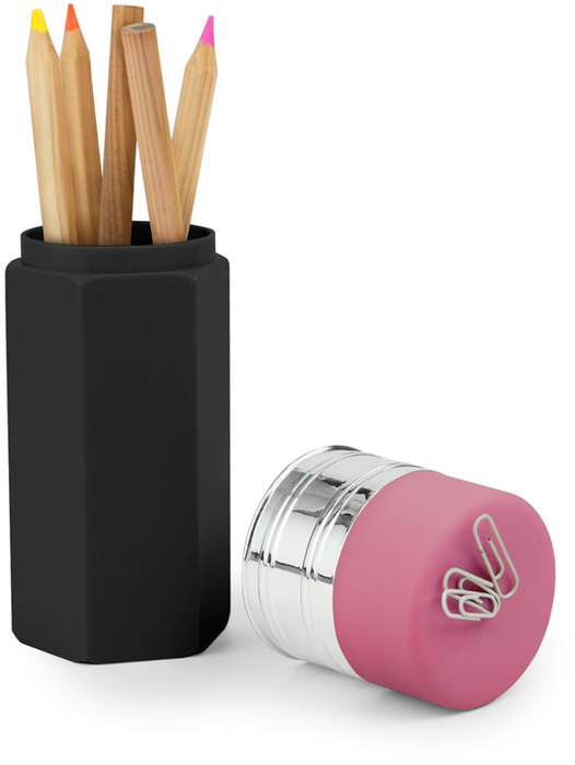 7 x 6 x 18,8 cm. Tapa imantada. Plástico. Portalapices. Un lápiz gigante para usar de cartuchera o tener como lapicero. Su gran goma de borrar es tapa y también un práctico imán. Presentación en caja de regalo.