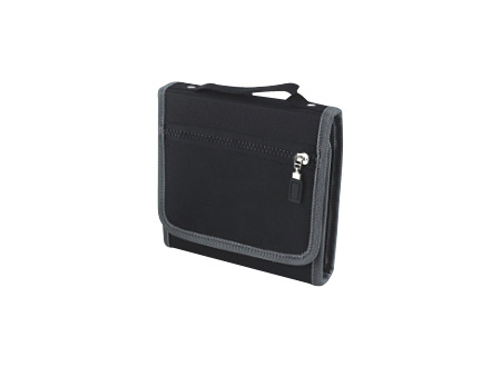 Set de 26 prácticas herramientas en Estuche plegable de tela raquelada negra. FICHA DEL PRODUCTO Tamaño: 15 x 15 x 3 cm (cerrado) / 45 x 25 cm (desplegado) Colores: Negro (08). Presentación: En estuche de tela raquelada negra.