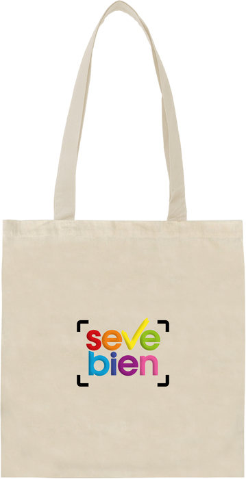 42 x 38 cm. 100% Algodón. Bolsa reutilizable. Manijas cosidas.