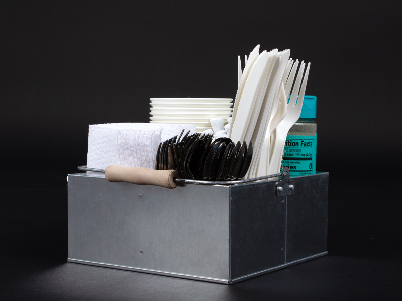 Canasto con 4 compartimentos interiores, fabricado en Acero Galvanizado de 0.35mm de espesor. Con asa metálica y mango de madera de pino. No incluye tapa. Ideal para poner velas o guardar accesorios metálicos, plásticos o de madera. Botellas chicas y vasos de vidrio, latas de bebida o cerveza.