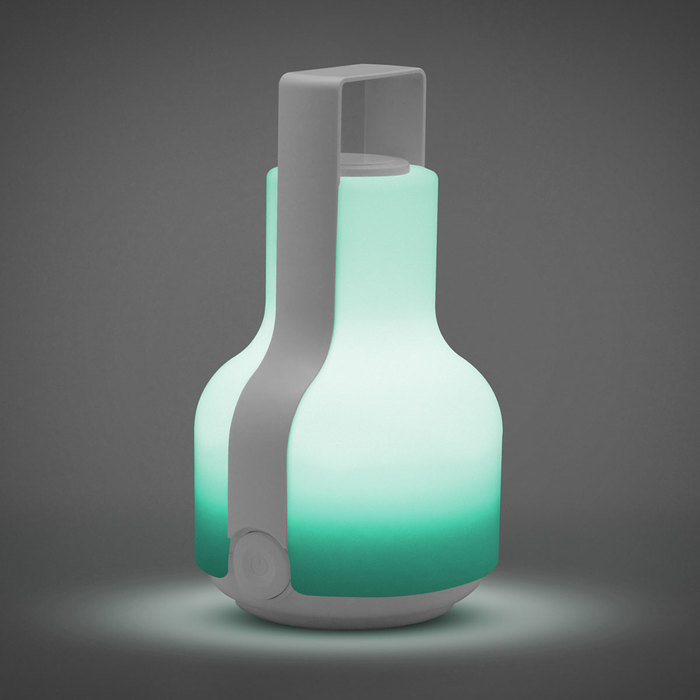 Ø 11 x 19 cm. Plástico. Práctica lámpara doble función. Para usar como farol o como linterna girando el panel LED. Tiene 3 niveles de intensidad de luz y un soporte para sujetarla.