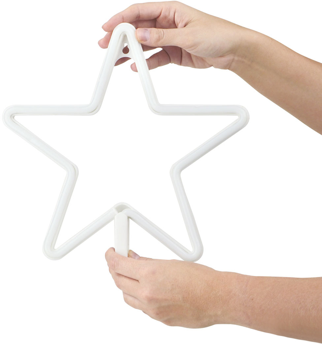 26 x 27 x 2,2 cm. Neón Flexible + Plástico. Luz decorativa. Neón flexible con estructura ABS y luz led. Funciona con conexión USB o con 3 pilas AA de 1.5V (no incluidas). Presentación en caja de regalo.