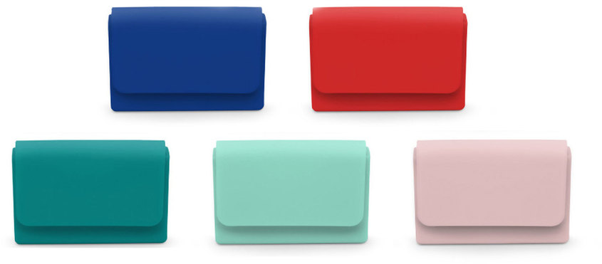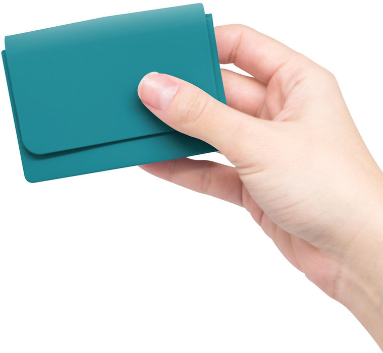 Portadocumentos de silicona. Para guardar documentos, tarjetas o usarlo como billetera o monedero. Tapa plegable, folio divisor y cierre con imán. Silicona. 9,5 x 6,5 x 1,5 cm.