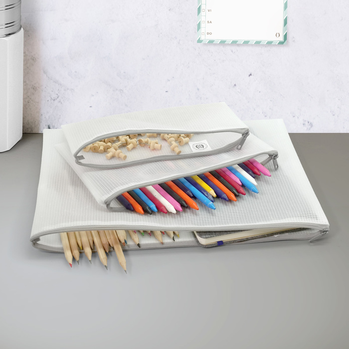 Sobres multiuso. Practicos estuches transparentes de EVA y cierre superior para usar de cartuchera, transportar papeles, hasta usar de billetera. EVA. Chico: 23 x 13 cm | Mediano: 23,5 x 17,5 cm | Grande: 33,5 x 25,5 cm.