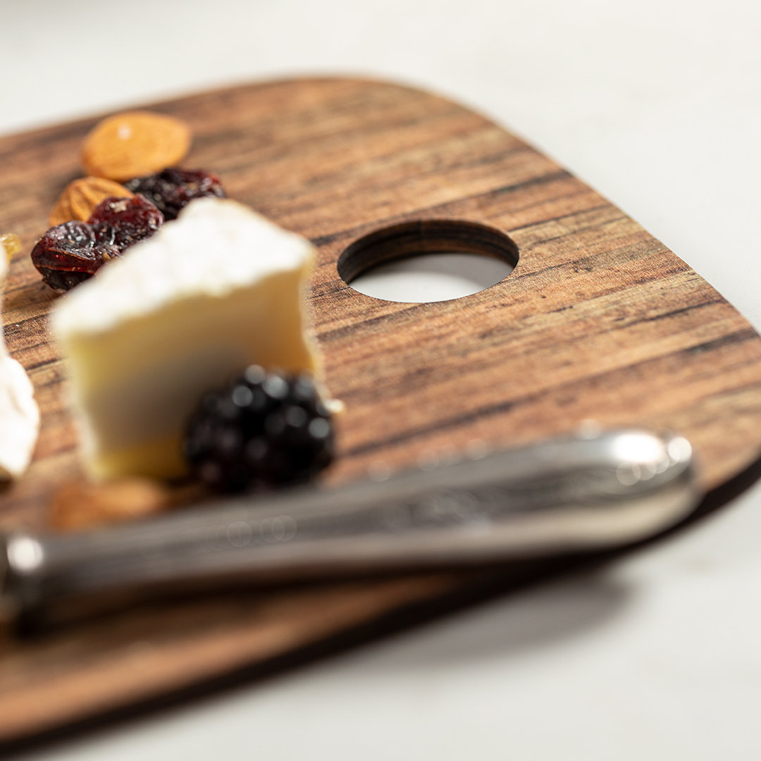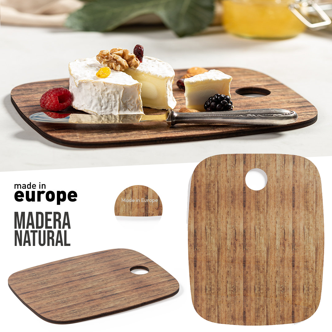 CARACTERÍSTICAS Composición: Madera Especificaciones artículo: 21.5 cm / 17 cm / 0.6 cm | 112 gr Packaging: alto (cm): 25 Packaging: largo (cm) : 36 Packaging: ancho (cm) : 13 Peso caja (Kgr): 4.7 Unidades/caja: 40