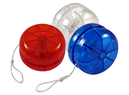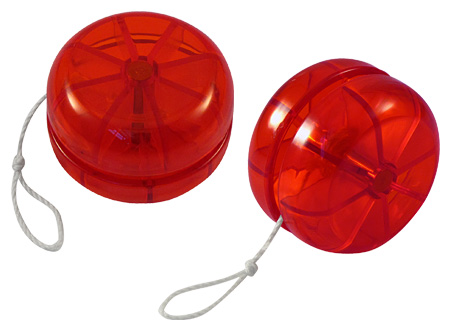 Yo-Yo Plástico Traslúcido. FICHA DEL PRODUCTO Tamaño: Ø 5.2 x 3.5 cm. Colores: Transparente (00), Azul Traslúcido (02), Rojo Traslúcido (03).