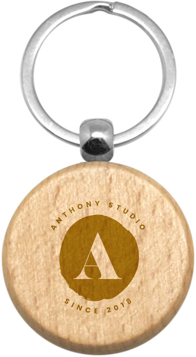Ø 3,1 x 0,5 cm. (La medida no incluye el aro). Madera. Llavero redondo con aro metálico.