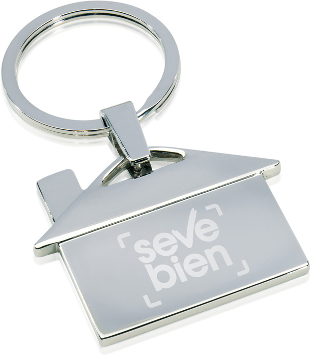 3,9 x 3,4 cm. Metálico. Llavero en forma de casa. Presentación en caja de regalo.
