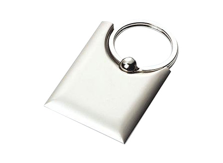 Llavero Metálico satinado, modelo "Bag". Presentación en estuche laminado negro con cuna aterciopelada.