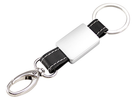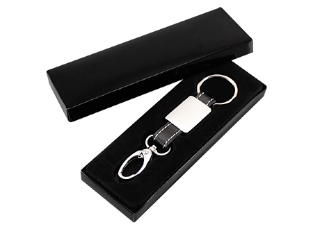 Llavero Metal-Cuero modelo "Technic". Presentación en estuche laminado negro con cuna aterciopelada.