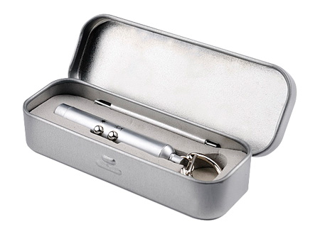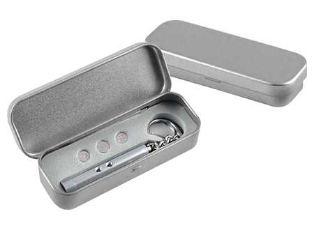 Llavero Metálico con Puntero Láser y Linterna LED. Presentación en Estuche de Aluminio.