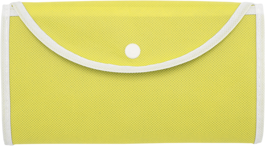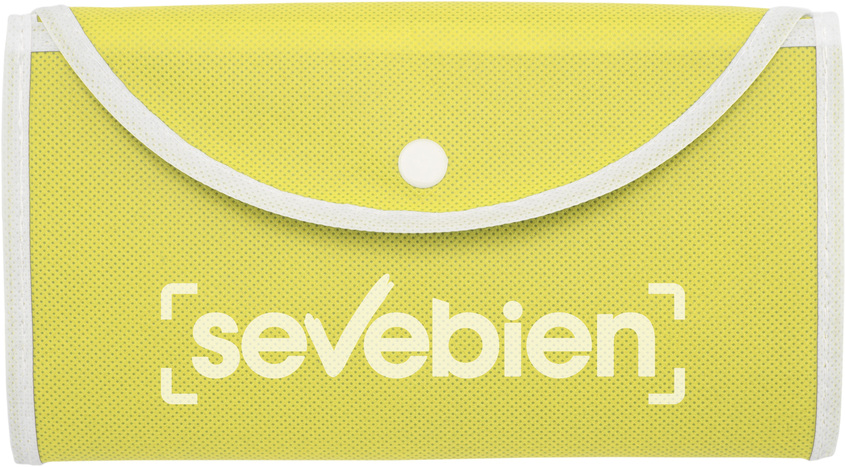 40 x 47.5 cm (abierta) / 20,5 x 12 cm (cerrada)-Non-woven. Bolsa que posee un bolsillo frontal con vivos blancos alrededor y un cierre de botón.Mayor resistencia debido a que son cosidas.