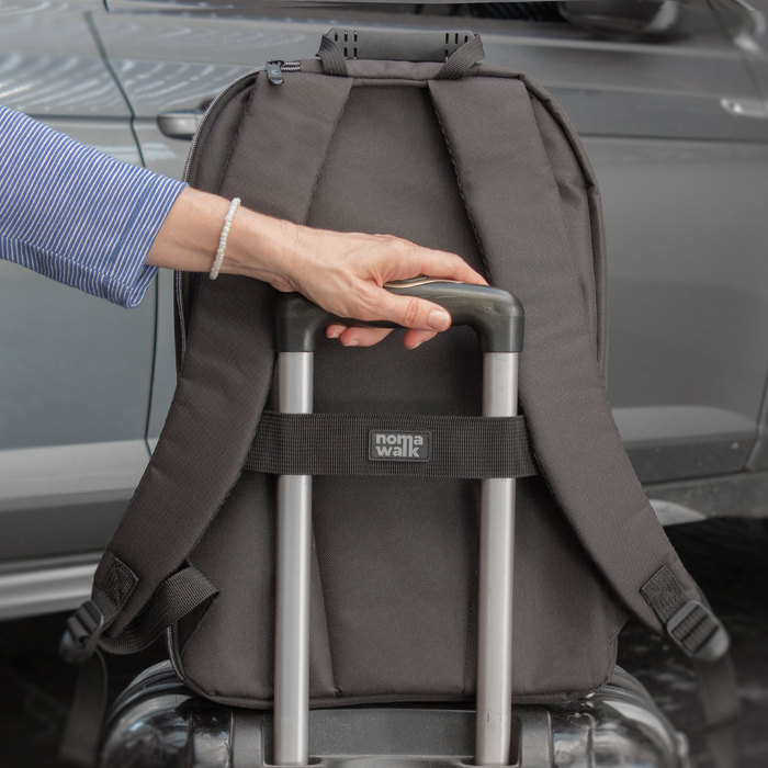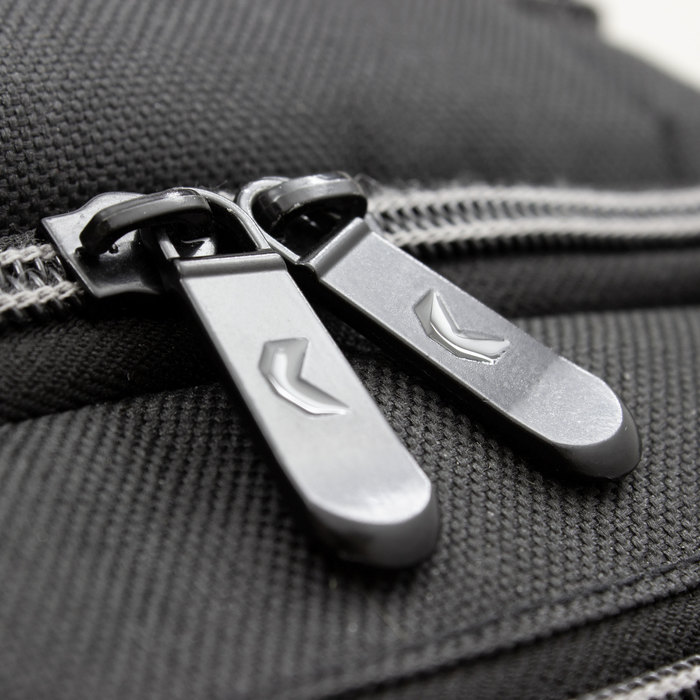 30 x 43 x 12 cm. Capacidad 14 litros. Poliéster 600D, interior poliéster 210D. Mochila portanotebook de 14 pulgadas, con 2 compartimentos principales y 2 bolsillos frontales horizontales. Con asa superior y correas acolchonadas y cierres metálicos, hebillas plásticas. Espalda acolchonada. Tira para sujetar la mochila en la manija extensible de un equipaje de mano.