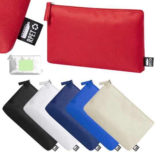 CARACTERÍSTICAS Composición: Poliéster 600D RPET Especificaciones artículo: 12 cm / 21 cm / 3 cm | 30 gr Packaging: alto (cm): 46 Packaging: largo (cm) : 65 Packaging: ancho (cm) : 23 Peso caja (Kgr): 13.5 Unidades/caja: 500