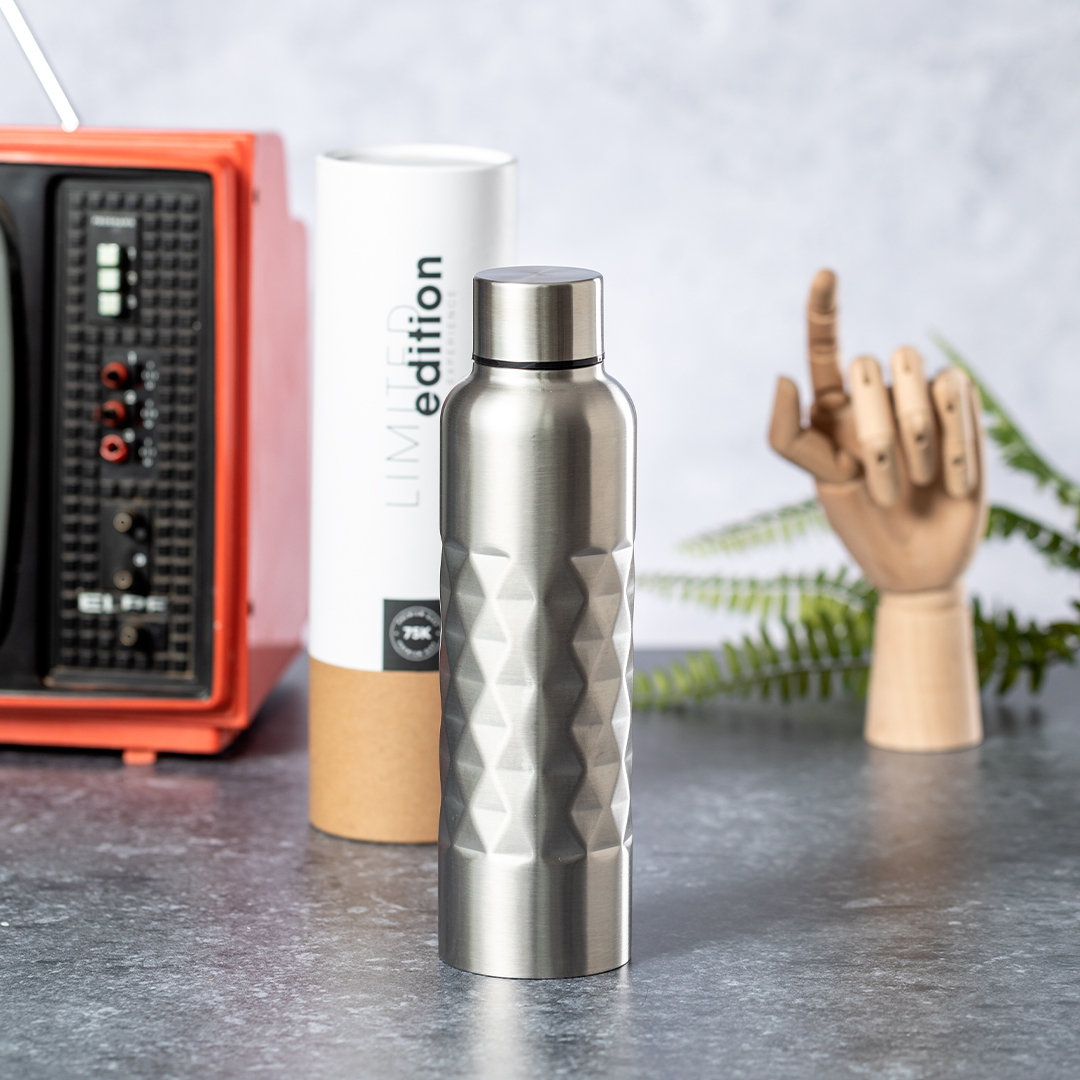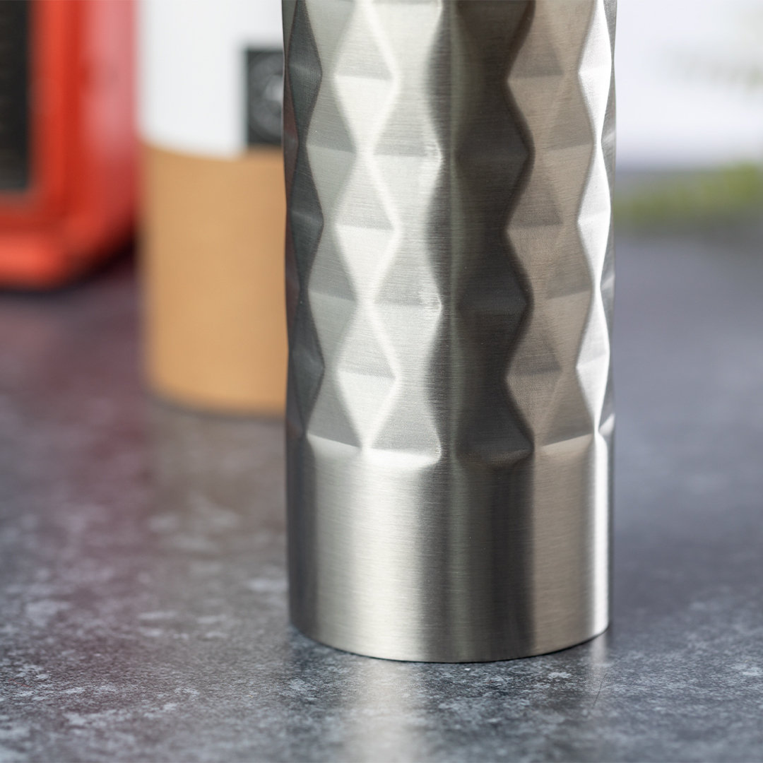 CARACTERÍSTICAS Composición: Acero Inox Especificaciones artículo: Diámetro: 7 cm, alto: 25 cm | Peso: 177 gr Packaging: alto (cm): 41 Packaging: largo (cm) : 49 Packaging: ancho (cm) : 28.5 Peso caja (Kgr): 8.6 Unidades/caja: 30