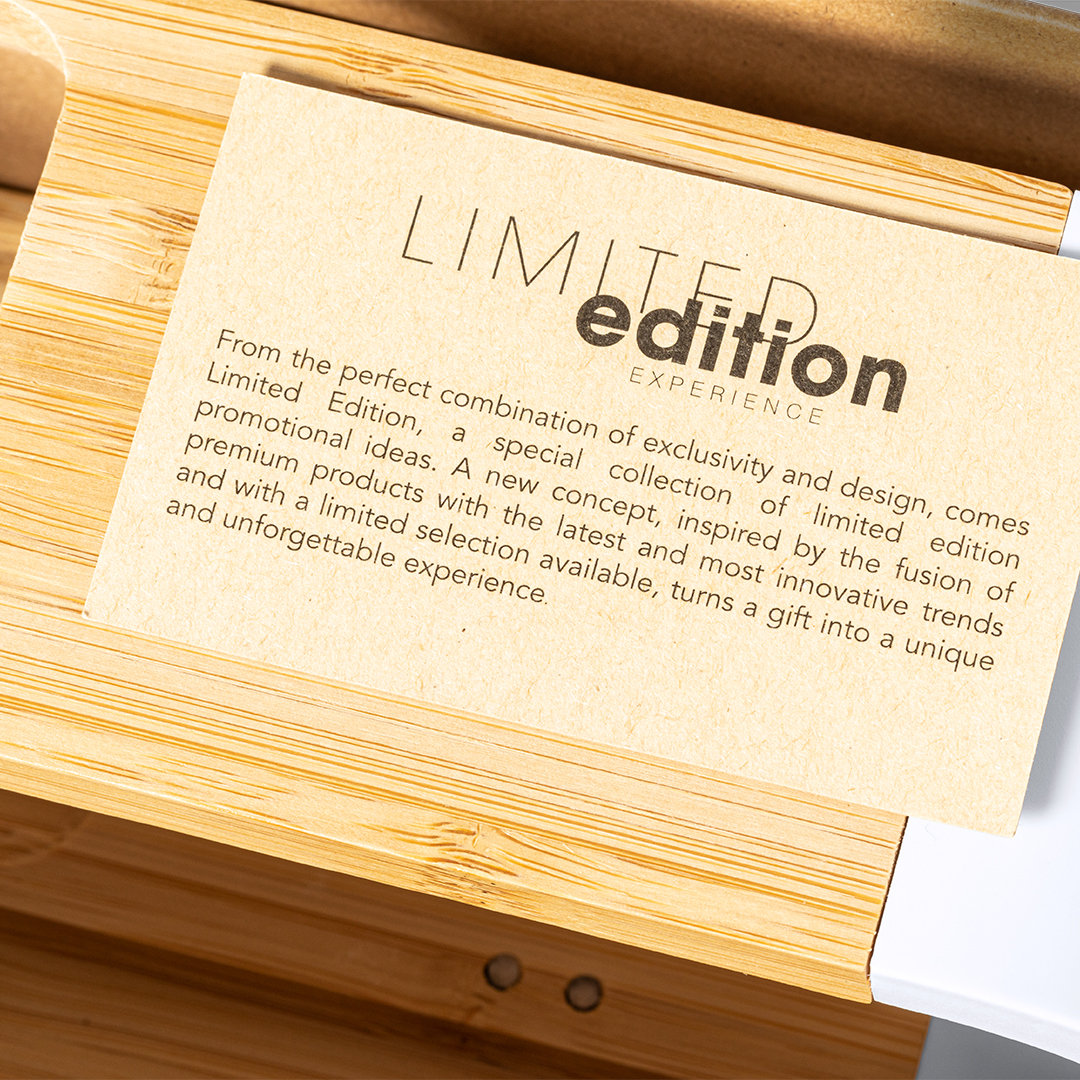 CARACTERÍSTICAS Composición: Bambú/ ABS Especificaciones artículo: 9.6 cm / 22.4 cm / 7.7 cm | 242 gr Packaging: alto (cm): 27.5 Packaging: largo (cm) : 52 Packaging: ancho (cm) : 45 Peso caja (Kgr): 12.8 Unidades/caja: 20