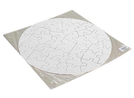 Puzzle Rompecabezas circular de 41 piezas, en cartón sandwich 1.2mm con cobertura aterciopelada para Sublimación. Presentación en bolsa de Polipropileno transparente.